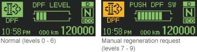 * Restrictions may be imposed when driving is continued while the DPF indicator flickers.