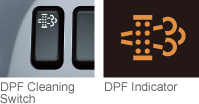 The DPF indicator flickers when the exhaust gas is not hot enough for automatic regeneration due to a traffic jam, etc. Stop the vehicle at a safe place, and press the DPF Cleaning Switch continuously to start manual regeneration of the filter.