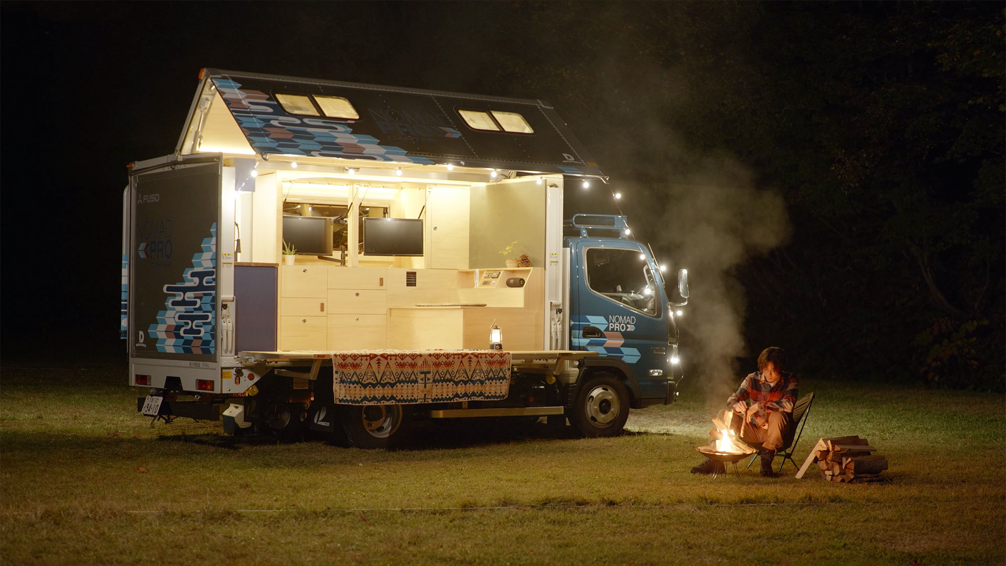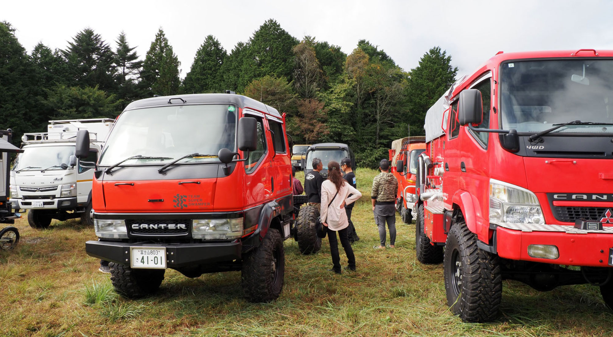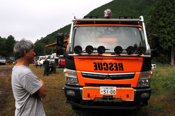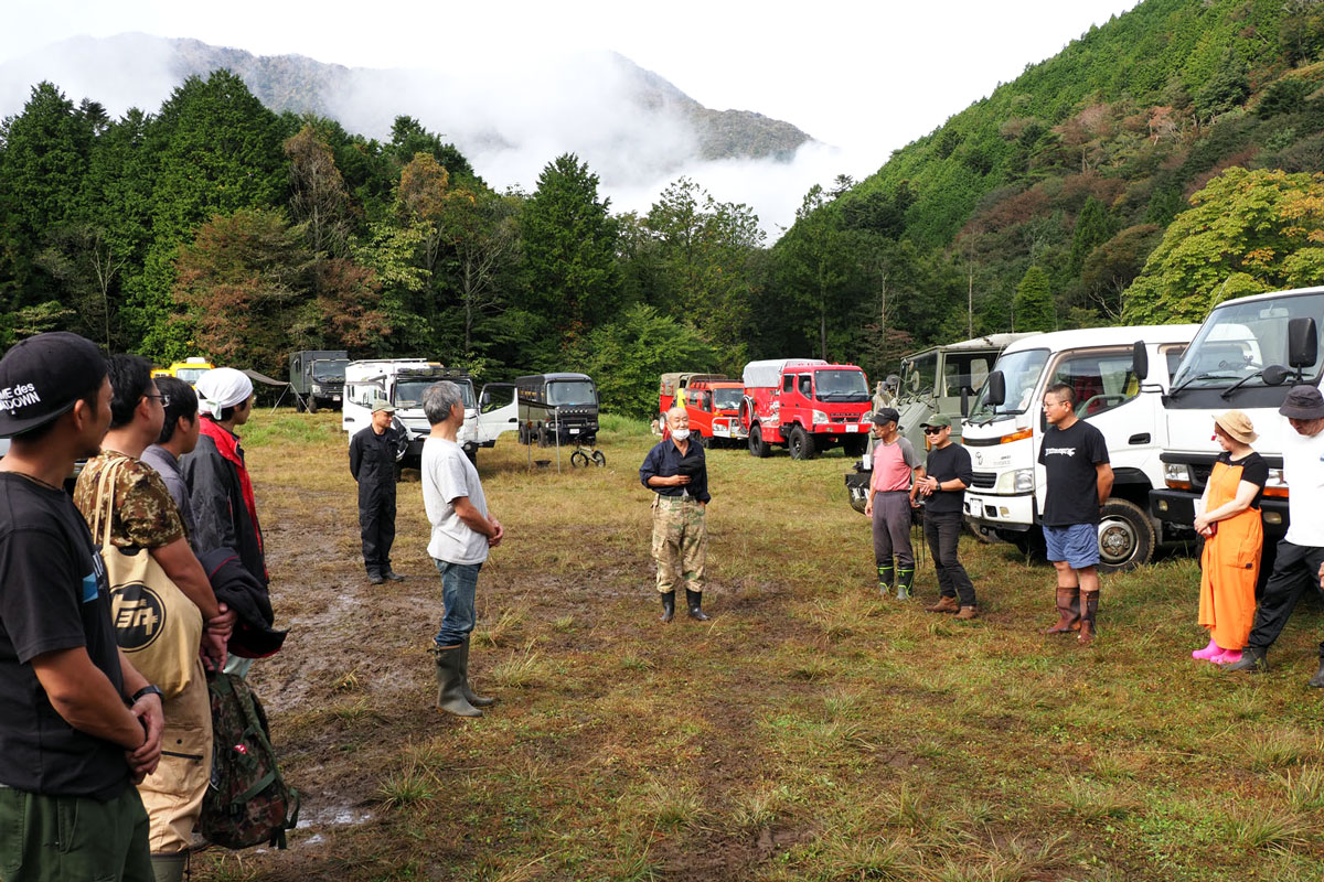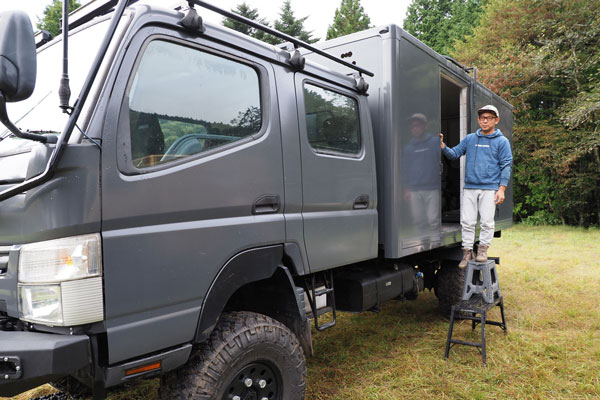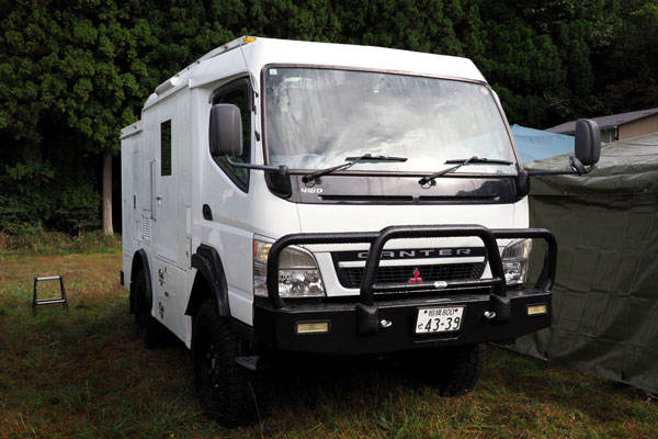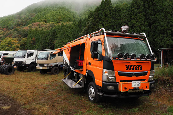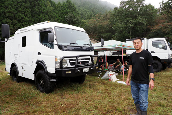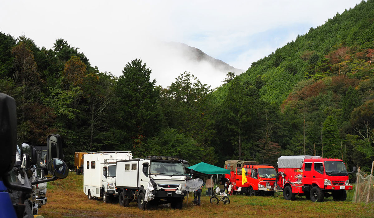 今回は、三菱ふそうの高床四駆のコンセプト車両「ATHENA」で参戦。ATHENAは2019年の東京モーターショーでデビューしたレスキュー車のコンセプトビークルです。筆者はこの車両の開発を担当していたため、特別な思い入れがあります。さらに、SNSで見ていた個性的なオーナーたちに実際に会えることも楽しみで、キャンプ場に向かう道中から胸が高鳴っていました。