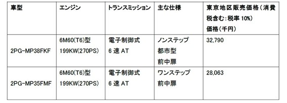 ■エアロスター:車両スペック及び東京地区販売価格(消費税含む:税率10%)