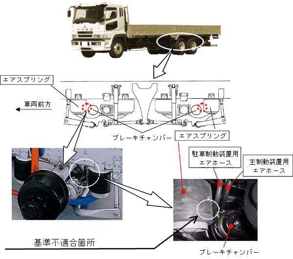 | 不具合の部位(部品名) | 制動装置(ブレーキホース) 緩衝装置(空気ばね) |
