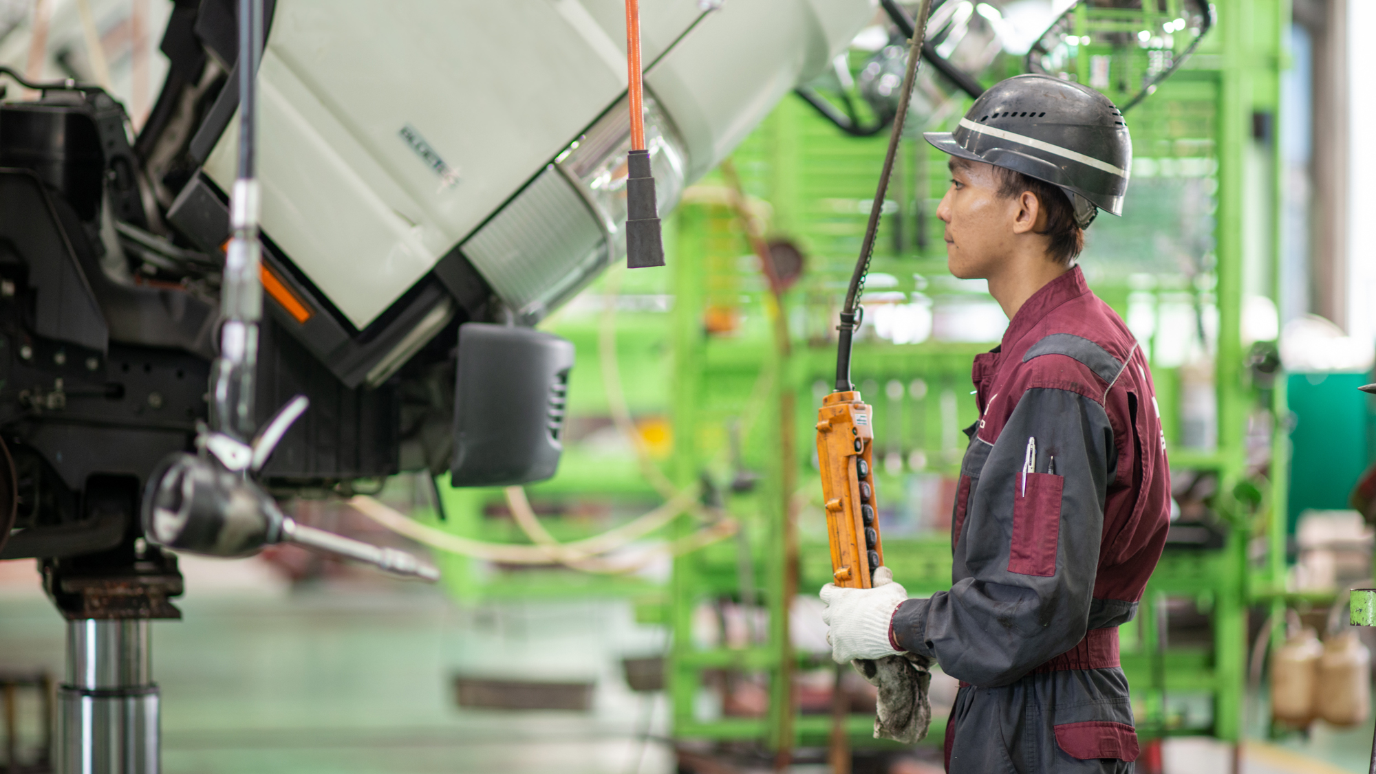 トップクラスの最新技術三菱ふそうの直営工場は、最新の設備を兼ね備え、常に進化を続けています。環境、安全に配慮しながら経済性にも優れた技術の提供をお約束します。