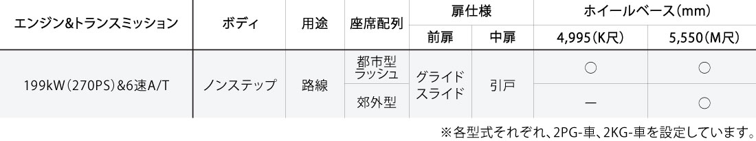 詳しくはカタログ諸元表該当ページをご覧ください。