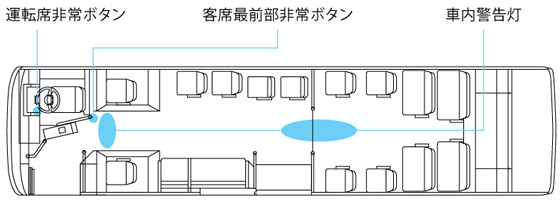 ※客席最前部非常ボタンが押された時点から、車内警報音が間欠吹鳴、車内警告灯が点滅、ハザードランプが点滅します。