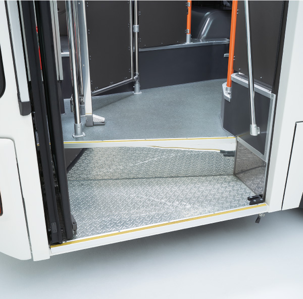 低いステップ&フロア高を実現。また、すべての乗降口扉では、ゆとりの高さのワイドな開扉スペースを確保しました。