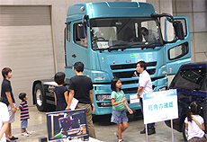 三菱ふそうトラック・バス株式会社(以下:MFTBC)は、9月7日(日)に東京国際展示場(東京ビックサイト)において開催された、日本自動車ジャーナリスト協会(AJAJ)主催の「母と子の楽ラク運転講習会」に大型トラックを出品し協力しました。 この講習会は同協会が母と子の交通安全促進を図る目的で、年に一度ボランティア事業として開催している安全講習会です。MFTBCは、様々な安全講習プログラムの中から “二輪車や大型車と乗用車の視界や死角の確認コーナー”において、大型トラック スーパーグレートのトラクターを出品しました。参加される方々に、実際に大型トラックの運転席に乗っていただき、トラックからは周辺がどのように見えるのか、死角はどこかなどを確認して理解していただくことで、事故を未然に防ごうというものです。 小学生のお子様を持つ参加者は、「はじめて大型トラックに乗ってみて、こんなに視界が良いとは思わなかった。しかしそれでも死角はあり、それを確認できたことは大変よかった。このような貴重な体験ができあらためて交通安全に努めたい。」と話しました。 また、AJAJの日下部会長は、「未来を担う子供達とそのお母さんに、AJAJの持つ交通安全促進の様々なスキルを伝えることで、安全で安心のできる交通社会をつくることに貢献していきたい。」と話しました。 MFTBCはこのような安全講習会に積極的に参加・協力し、道路交通安全の確保に努めてまいります。 ● 「母と子の楽ラク運転講習会」の概要 |
