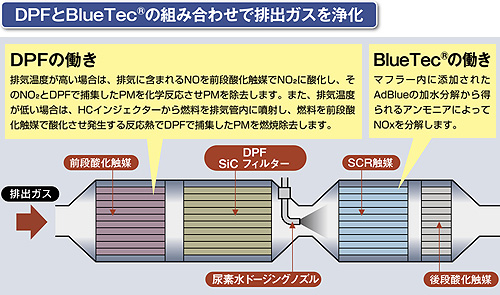 弊社のインターネットホームページ上にAdBlue情報サイトを新設し、供給体制に関する情報を常にアップデートして掲載します。 MFTBCは、2007年に発売した大型トラック「スーパーグレート」に初めて、尿素SCRシステムを搭載。さらに今年に入ってからは「BlueTec®システム」と名称を変えて4月発売の新型大型トラック「スーパーグレート」を皮切りに、中型トラック「ファイター」、大型観光バス「エアロクィーン」「エアロエース」、大型路線バス「エアロスター」へと全面的に採用しました。 |