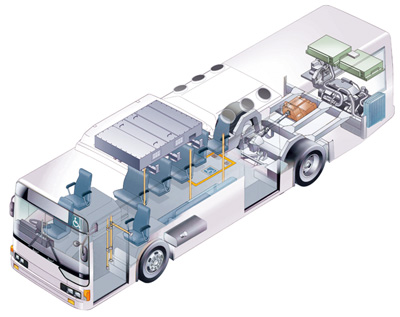 低燃費でクリーン、静粛性に優れた新世代のハイブリッド大型路線バス